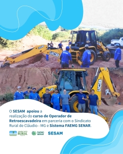 No dia 20 de maio de 2025 foi realizado o Curso de Operador de Retroescavadeira em Carmópolis de Minas e o SESAM apoiou o Sindicato Rural de Cláudio MG e o Sistema FAEMG SENAR na realização.